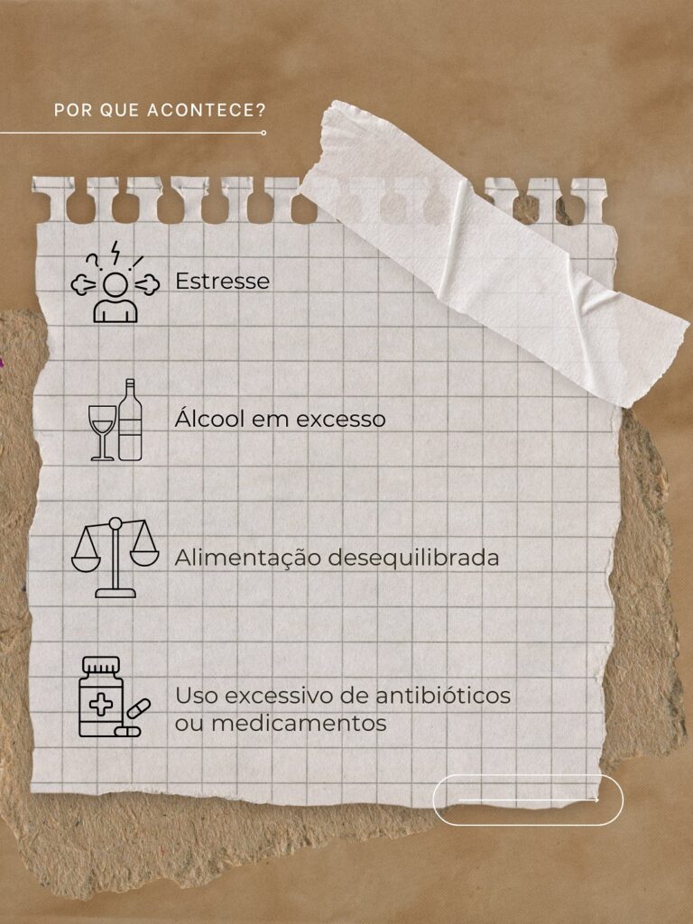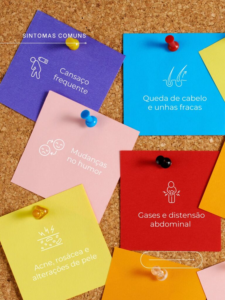 🦠 Sintomas como queda de cabelo, acne, fadiga, baixa imunidade e até alterações emocionais podem estar relacionados a esse desequilíbrio.
