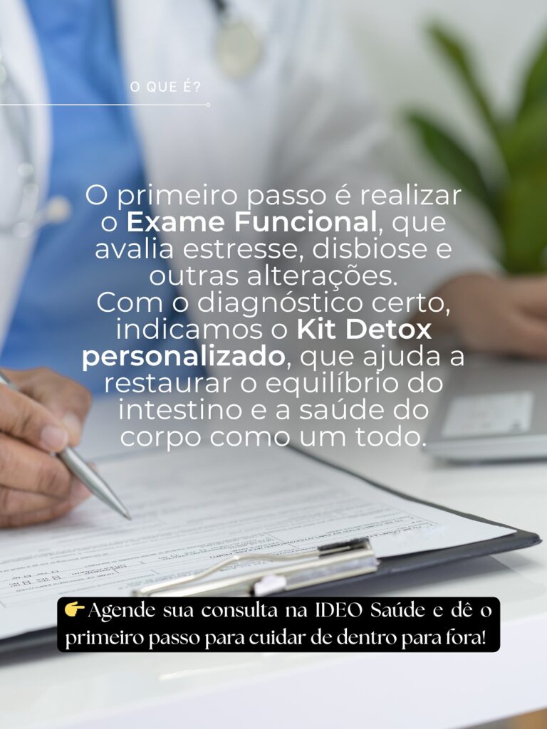 Com esse diagnóstico, conseguimos indicar um Kit Detox personalizado, que ajuda a restaurar o equilíbrio intestinal e o bem-estar do corpo todo.
