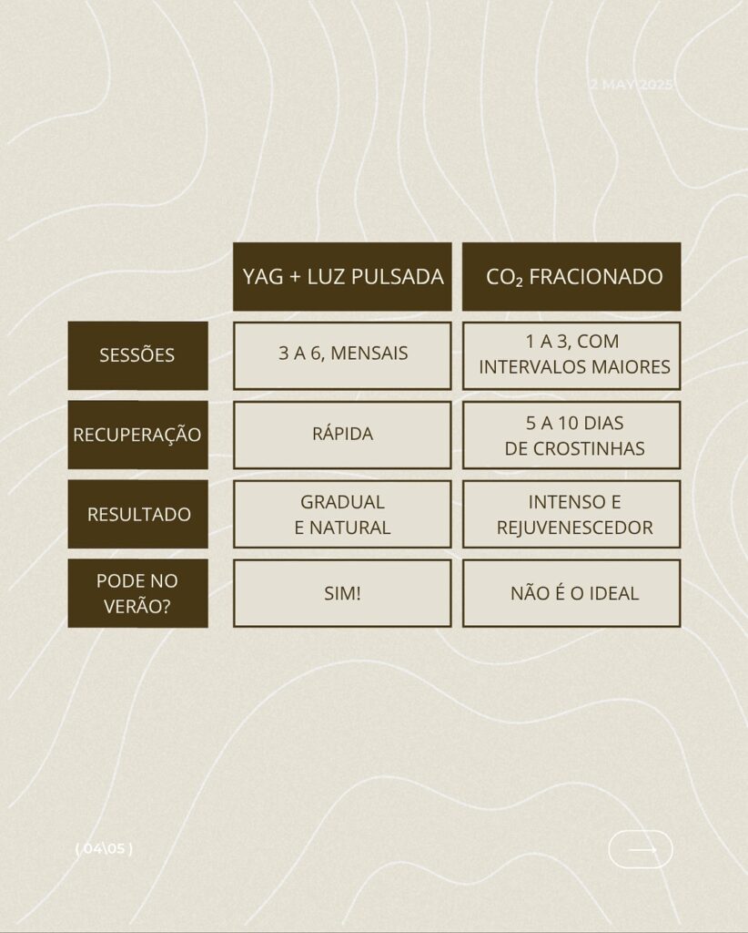 Já o CO₂ Fracionado entrega rejuvenescimento intenso e retexturização profunda, mas exige um tempo de recuperação maior.