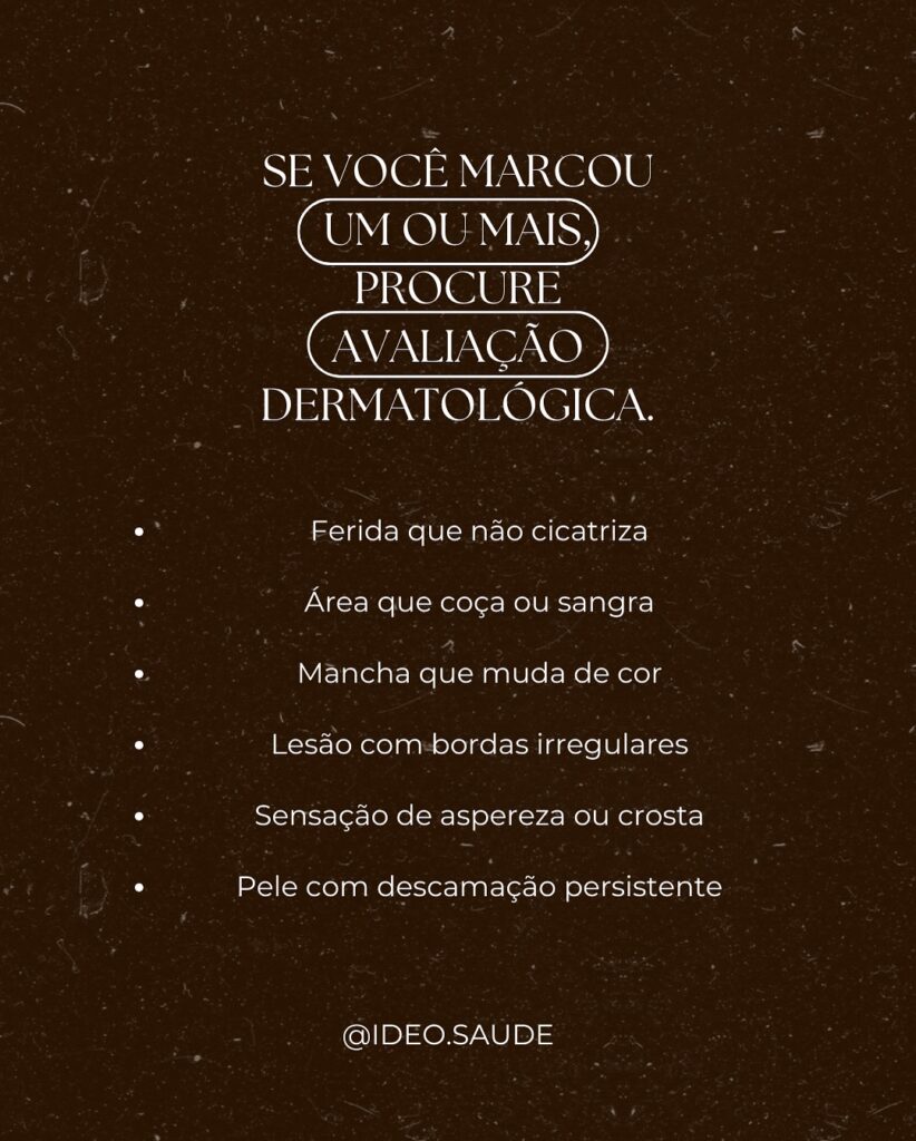 Se você identificou um ou mais, procure avaliação dermatológica.